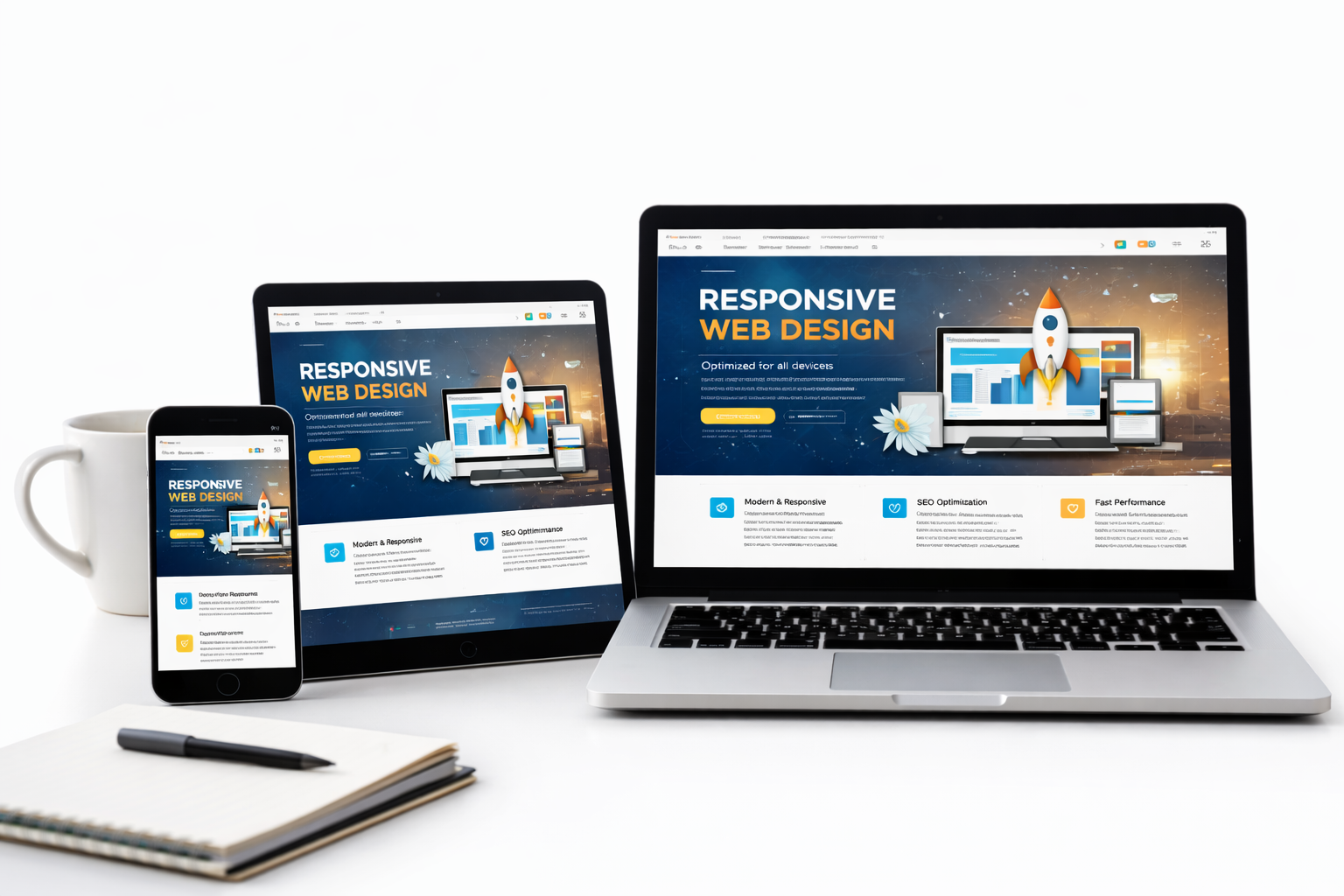 Diseño páginas web responsivas que se adaptan perfectamente a cualquier dispositivo, ya sea celular, tablet o computadora.